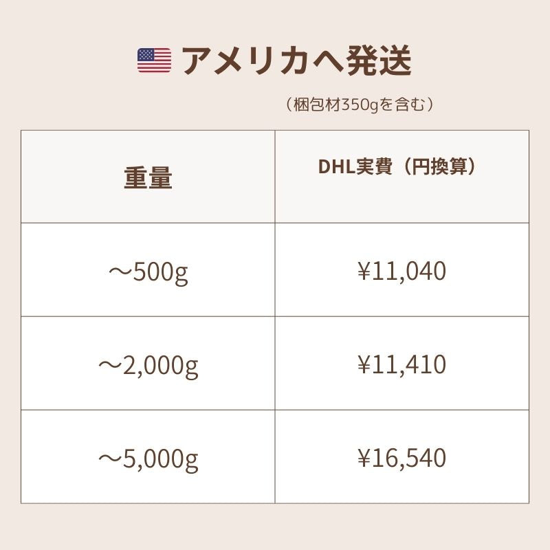 現在、DHL Expressのみでのアメリカ宛発送は引き続き可能となっております。上記はDHL Expressの価格となります。